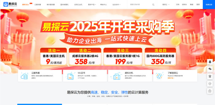 易探云怎么样?易探云香港云服务器主打高性价比,其入门款2核4G5M带宽配置年付仅518元,均价低至每月9元起,极具价格吸引力。该产品最大优势在于采用香港机房,无需备案即可快速部署网站,并通常提供优质网络线路,确保中国大陆及亚洲用户访问的低延迟和稳定性。它非常适用于个人开发者测试、小型企业官网、外贸展示站及初学者建站等场景。在选择时,用户需注意特价可能为首月或年付优惠,并应仔细核实续费价格、带宽是否为独享及售后服务条款,综合来看,易探云(yitanyun.cn)香港云服务器是预算有限且追求快速上线用户的一个不错选择。 点击进入:易探云官方网站地址 一、易探云香港服务器优惠 1、香港云服务器(入门型) 价格: 9元/月(首月特价,通常需要年付才有此均价) <<直达购买 配置: 2核 CPU、4GB 内存、5Mbps 带宽 年付价格: 518元/年(平均每月约43.2元) <<直达购买 特点: 价格极具吸引力,配置对于个人网站或小型应用来说比较基础。 2、香港站群服务器 价格: 1200元/月起 <<直达购买 特点: “站群服务器”通常指带有大量独立IP地址(例如数十个甚至数百个)的服务器,主要用于SEO优化、多网站运营等需要避免IP关联的场景。起价较高,配置和IP数量会根据价格变化。 二、产品优势分析 ·地理位置优越: 香港机房对中国大陆和亚洲其他地区都有很好的网络连接速度,延迟较低。 ·免备案: 使用香港服务器搭建网站无需进行工信部ICP备案,可以快速上线。 ·国际带宽: 通常提供优质的国际带宽,适合面向海外用户的业务。 ·价格吸引眼球: 特别是9元/月的入门款,在市场上非常有竞争力,适合预算有限的用户尝试。 三、潜在注意事项与选购建议 在考虑购买时,建议您注意以下几点,避免后续出现问题: 1、价格陷阱 首月 vs. 长期: “9元/月”很可能是首月特价或年付折算后的价格。务必查看续费价格,可能远高于首购价。 配置是否充足: 5M带宽对于有一定流量或图片较多的网站可能很快成为瓶颈。需要评估自己的业务需求。